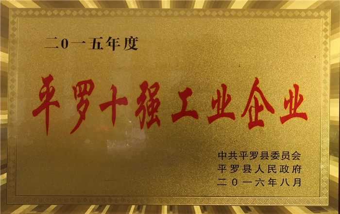 In 2015, it was rated as one of the top 10 industrial enterprises in pingluo county